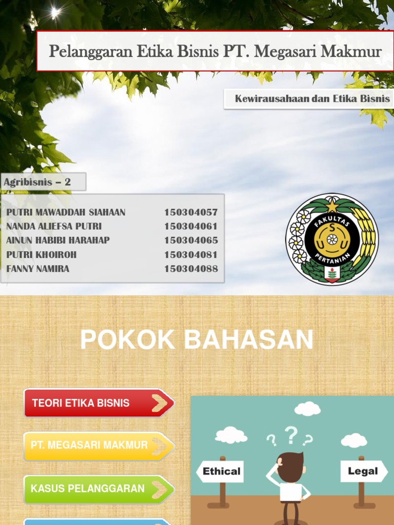 Kedua, perusahaan tersebut tidak hanya terlibat dalam semacam kasus kecil seperti menyembunyikan atau. Pasal 7, kewajiban pelaku usaha adalah :ayat 2 : Etika bisnis merupakan aspek moral dalam menjalankan bisnis.