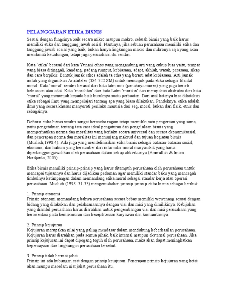 (DOC) KASUS PELANGGARAN ETIKA BISNIS Markom D Academia.edu