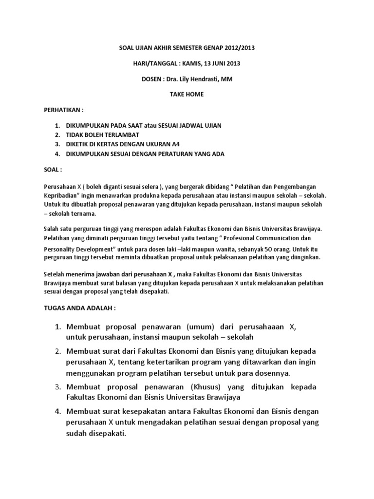 Soal Ujian Akhir Semester Genap 2012 Komunikasi Bisnis