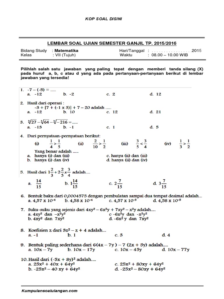 SOAL UTS MATEMATIKA KELAS 7 SEMESTER 1.pdf